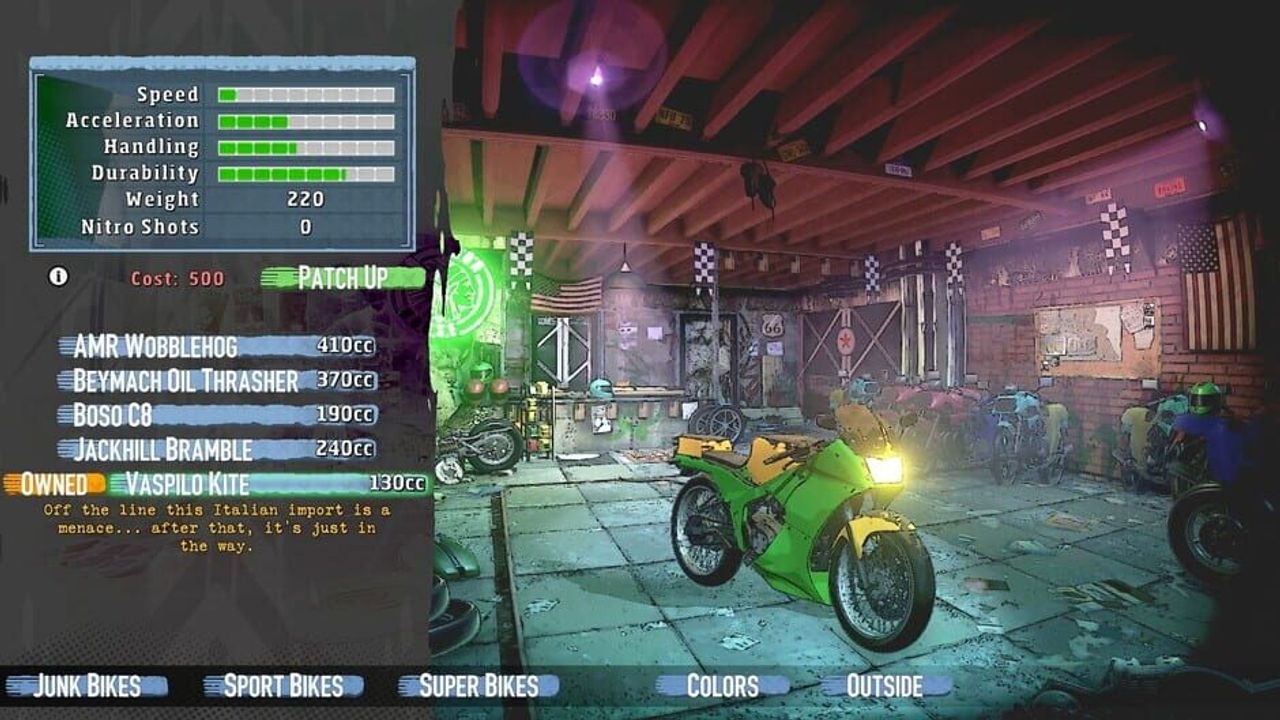 90s themed beat'em up motorcycle racing✓