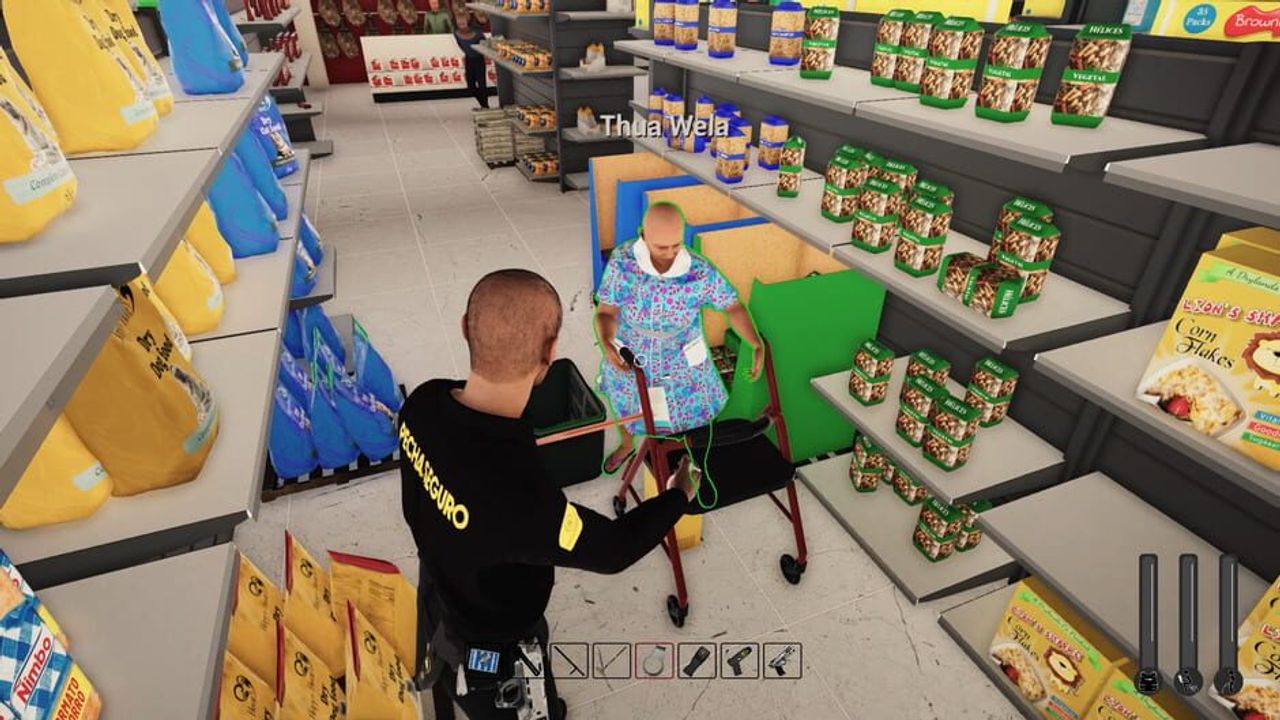 Gameplay Supermarket Security Simulator offers a unique blend of simulation and action gameplay. Your tasks include monitoring customers, checking security cameras, and intervening when you catch someone trying to steal. Use your truncheon or taser to subdue thieves and handcuff them when necessary. The game features various scenarios, from old ladies trying to sneak trolleys out of the store to kids who snack on items and leave empty packages behind. The security cameras may fail at critical moments, so you'll need to be resourceful—sometimes even fixing them with a broom! As night falls, prepare for a more intense experience, where robbers may come to test your skills.